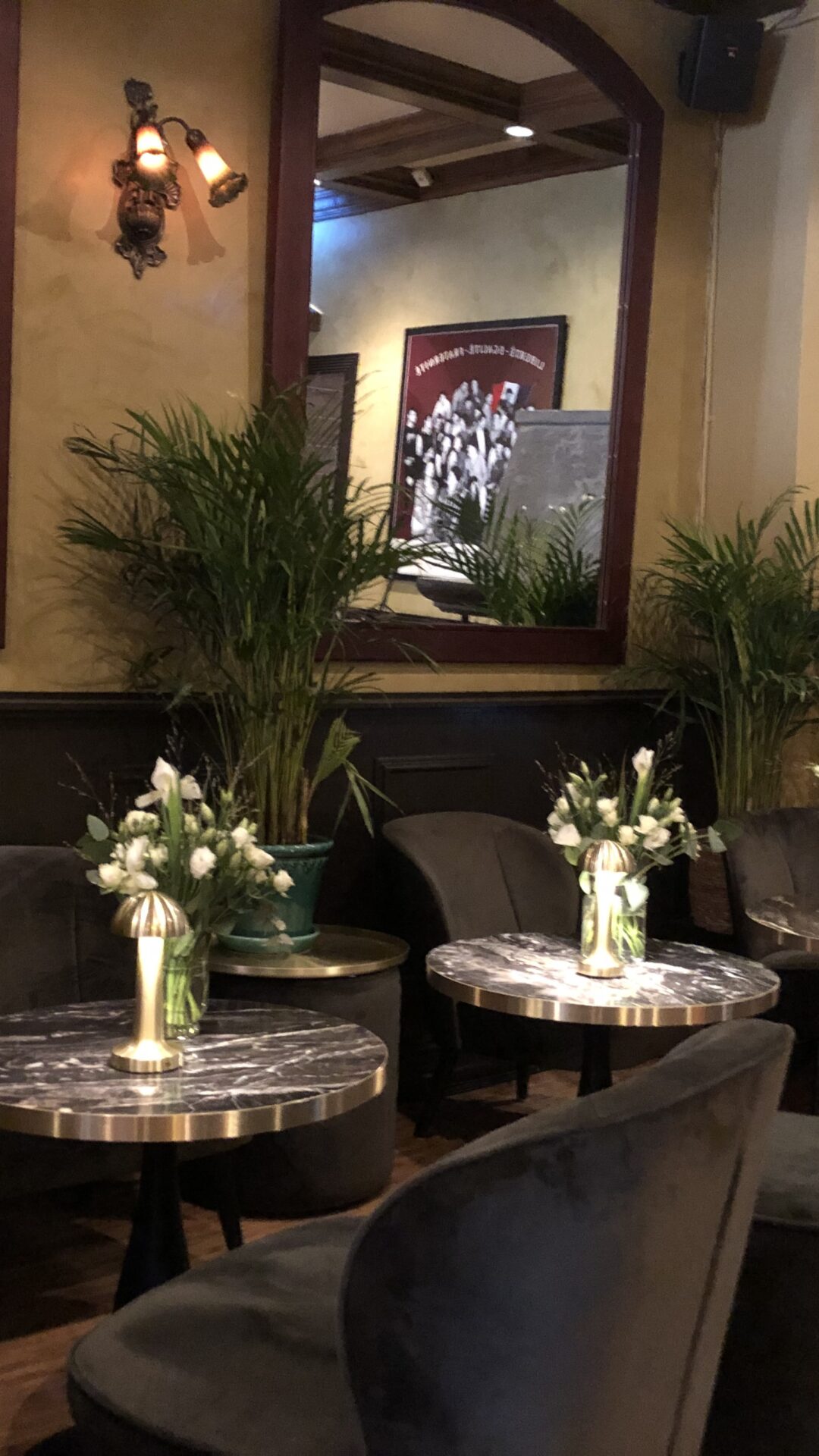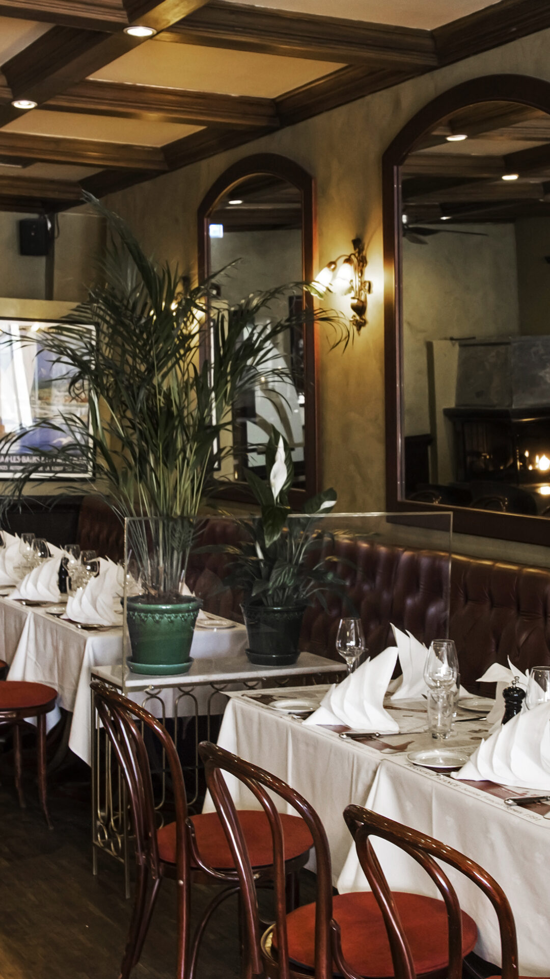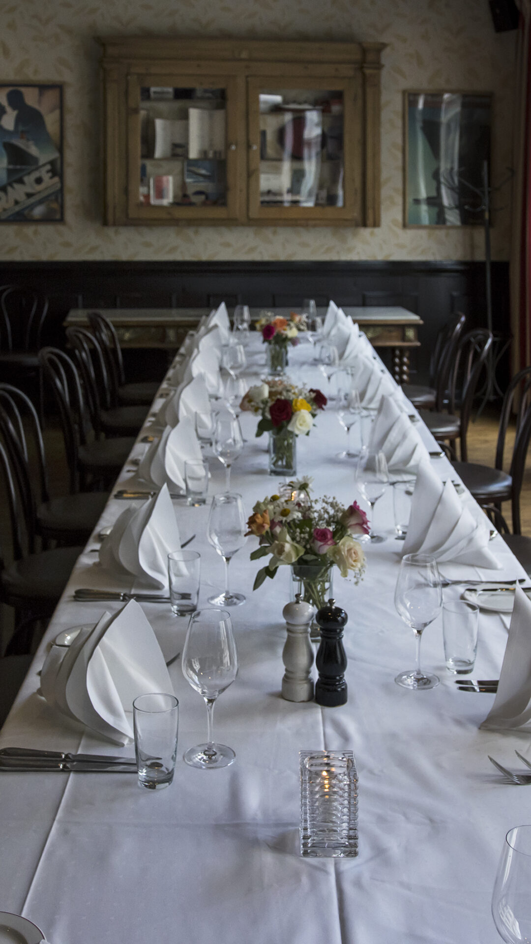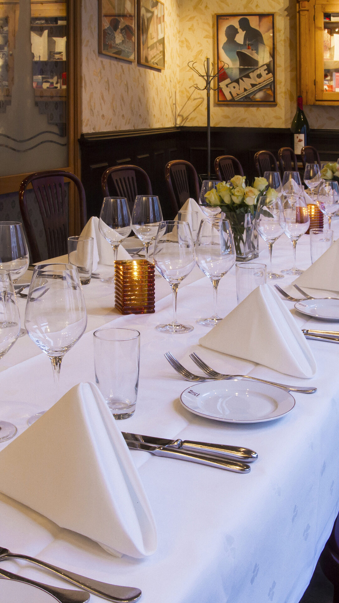 2. etasje er litt som 1. etasje med flere småbord, men vi har også et eget rom som kan lukkes og hvor vi kan dekke langbord til 22 gjester. Dette rommet kaller vi for 'Francerommet' - fordi det er dekorert med bilder, menyer og utstyr fra den legendariske SS France som gikk transatlantisk fra Le Havre til New York. Skipet ble senere kjøpt av Knut Kloster, og omdøpt til SS Norway.....Litt som Brasserie France - veldig fransk, men allikevel beliggende midt i Oslo.