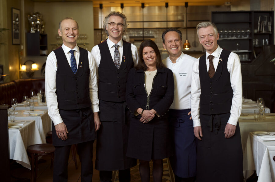 Når du blir ønsket velkommen i døren av en av våre hovmestere, og tatt til ditt bord av en servitør, har ganske mye vært gjort allerede. Hver dag har vi fra 150 til 250 gjester som skal inn samme dør hvor også alt av mat, vin, mineralvann, utstyr og personalet har gått. Grønnsaker, kjøtt og fisk skal forberedes for lunsj, middag og selskaper. Makroner, trøfler og kaker skal være ferske og nystekte for vår dessertvogn. Vi har mange lærlinger på kjøkken og i sal, de har gjerne både praktiske og teoretiske kurs på dagen før de er med i service i kjøkken og i restaurant under veiledning av våre faglærte og erfarne kokker og servitører. I 4. etasje vaskes alt av porselen, bestikk og kjøkkenutstyr opp av vårt oppvaskteam. Heldigvis har vi flere heiser! Sammen bidrar alle til at du skal få en god opplevelse - til lunsj og til middag!