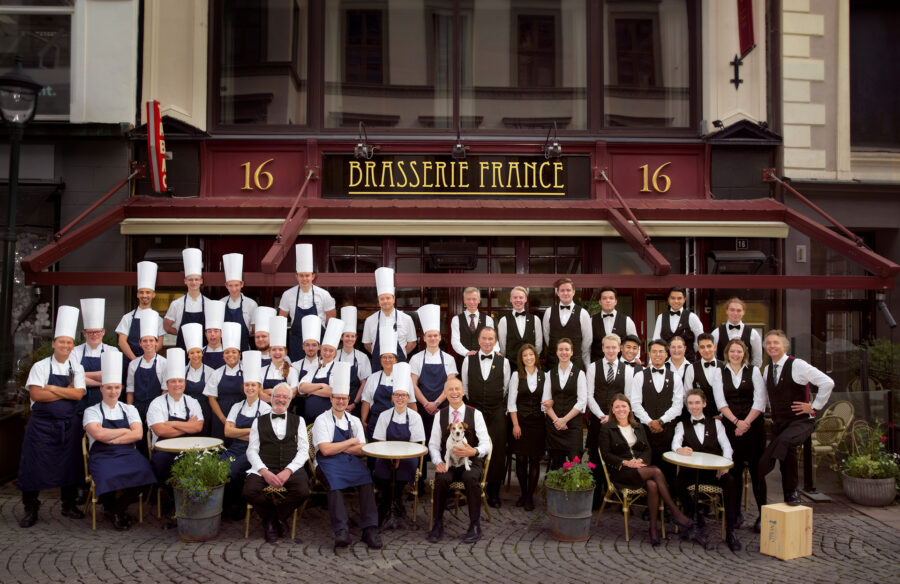 I 2001 kjøpte Knut Wesenberg, Knut Brottveit, Ingun og Pål Suarez restaurantene A touch of France og d'Artagnan av Freddie Nilsen. Freddie hadde drevet restauranter med god fransk profil helt siden 1979. Og vår drøm var nettopp det å utvikle restauranten til å være enda tydeligere på sin franske adresse. Vi savnet et godt brasserie i Oslo som servert gode og klassiske franske retter som løksuppe, kalvelever, entrecôte med bearnaise og biff tartar. Som de stedene vi alltid kommer tilbake til når vi besøker Frankrike. Etter snart 25 år er vi fortsatt her! Det å arbeide sammen med engasjerte kolleger og daglig møte mange gode og trivelige stamgjester - det gir mening. I tillegg å få ta del i 2 år av en lærlings liv - hvert år utdanner vi 6-7 kokker og servitører. Det er fint! (på bildet er også Sverre Sivertsen med, han er vår restaurantsjef og ble medeier i 2009)
