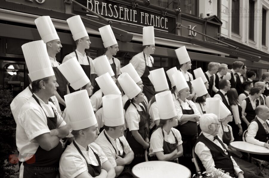 Vårt kjøkken henter inspirasjon fra de store brasseriene du finner i Paris, som Brasserie Bofinger og La Coupole. Men hjerte vårt ligger også hos de små, familiedrevne bistroene du finner gjemt bort i bydelene. Mange spør om vi henter råvarene fra Frankrike, og noe får vi derfra. I hovedsak bruker vi norsk kjøtt og norsk fisk og skalldyr.