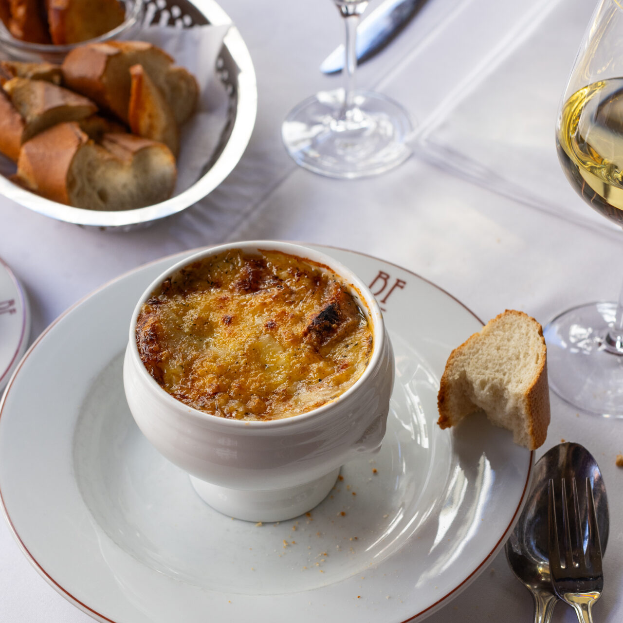 Vårt kjøkken er klassisk og moderne. Hos oss vil du finne retter du også finner på de store brasseriene i Frankrike, av og til også med en norsk vri. Vi bruker i hovedsak norsk kjøtt og sjømat fra våre farvann. Skalldyr, både på tallerken og på fat finner du alltid i vår meny, og selvfølgelig retter som løksuppe, snegler, entrecôte og bouillabaisse.